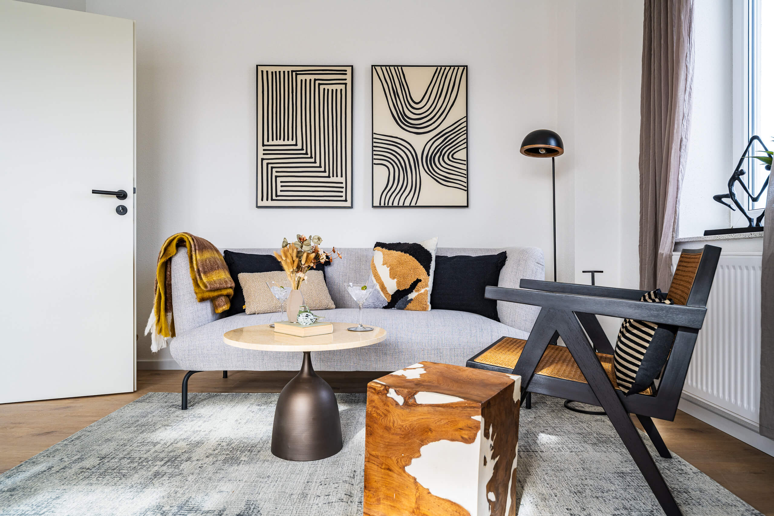 Design folgt Struktur: Möbel, Texturen und Objekte sind präzise gesetzt, um Ruhe, Balance und Spannung zugleich zu erzeugen.